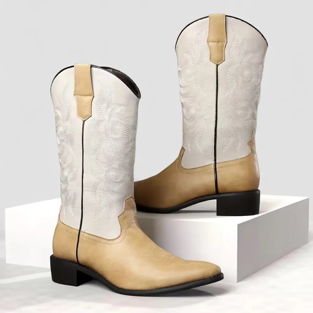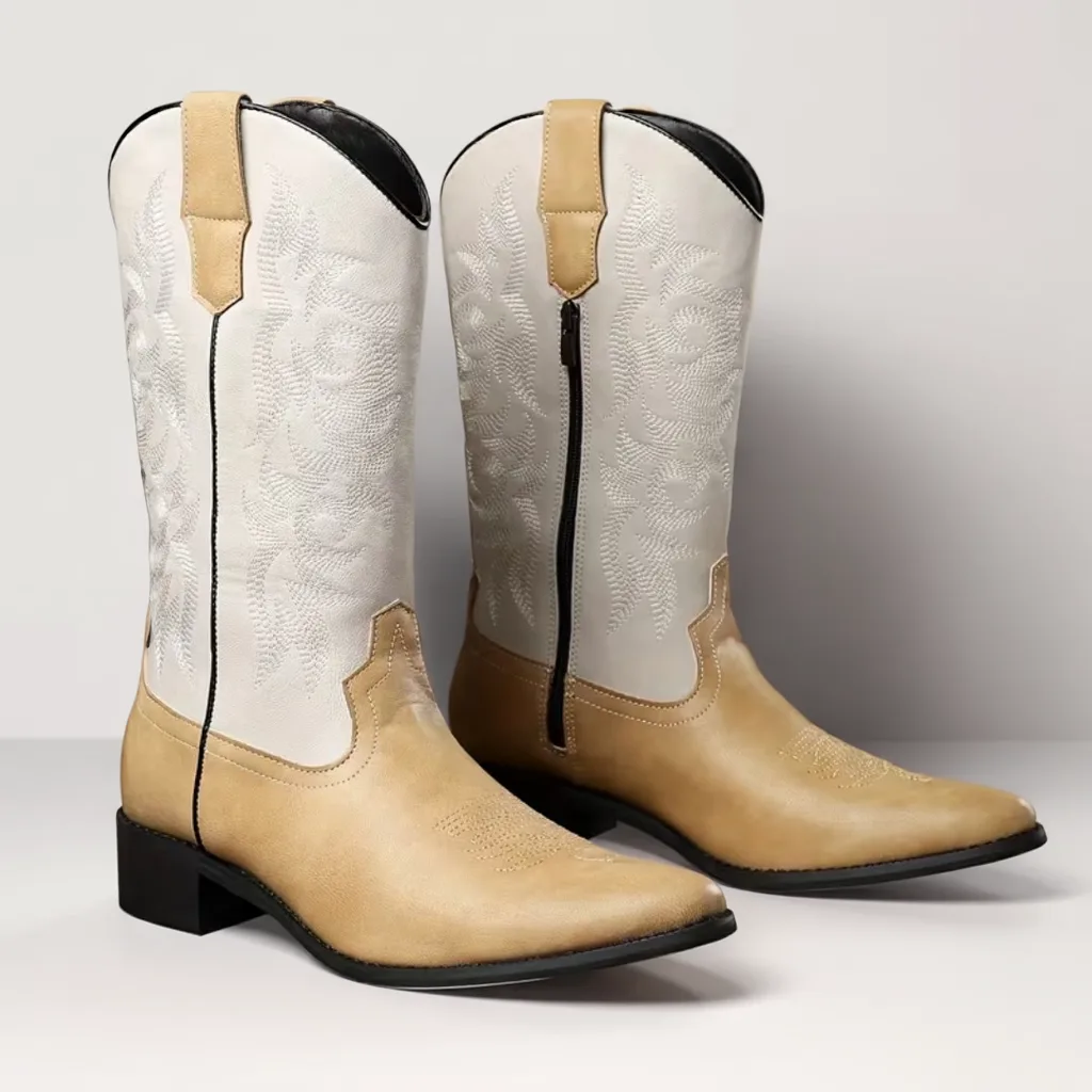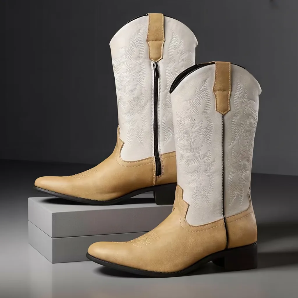 Men’s brown and white Slip-On Street Boots, Casual All-Season Wear