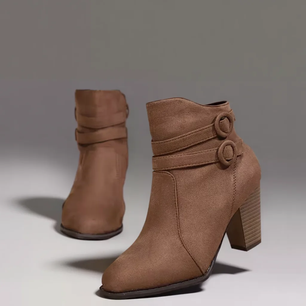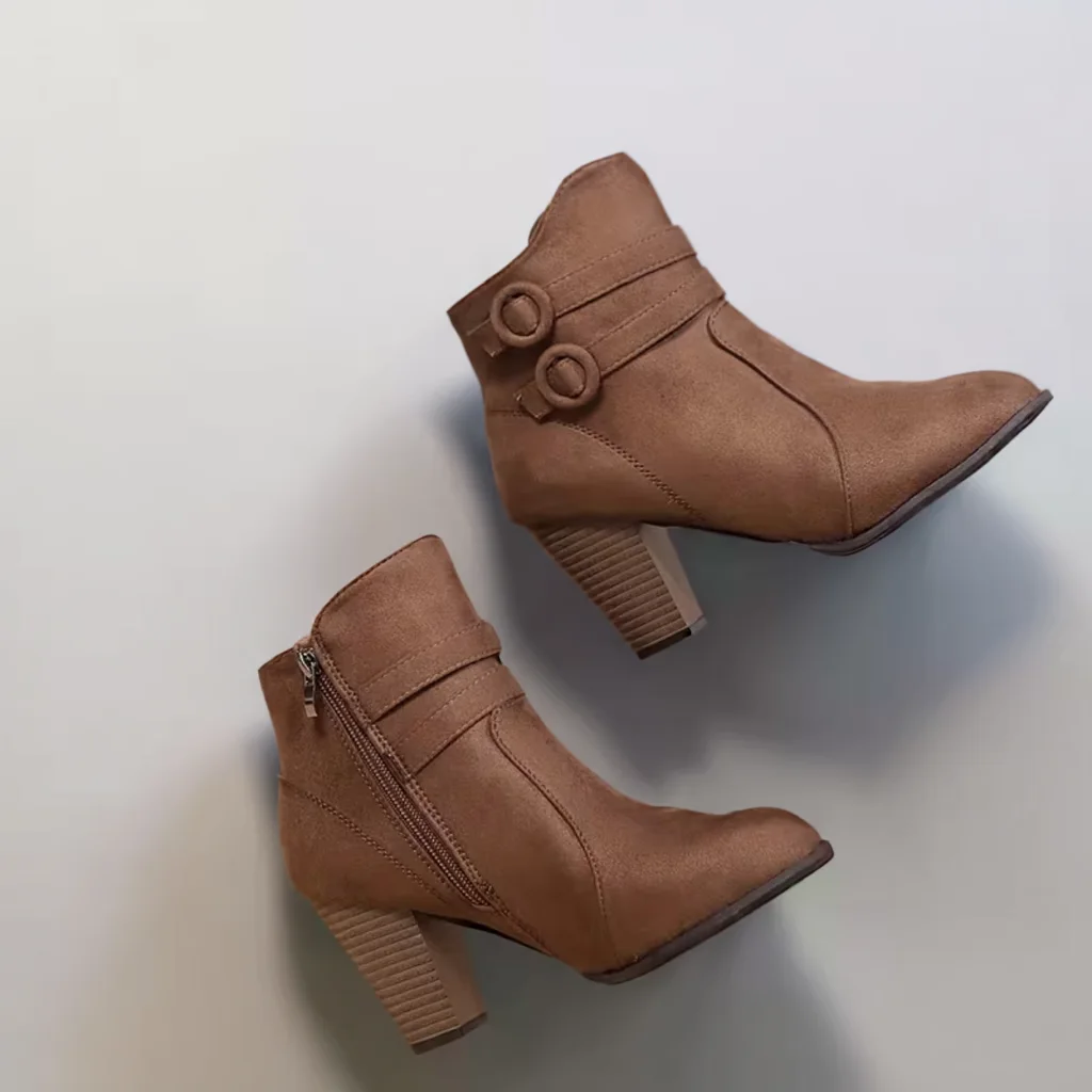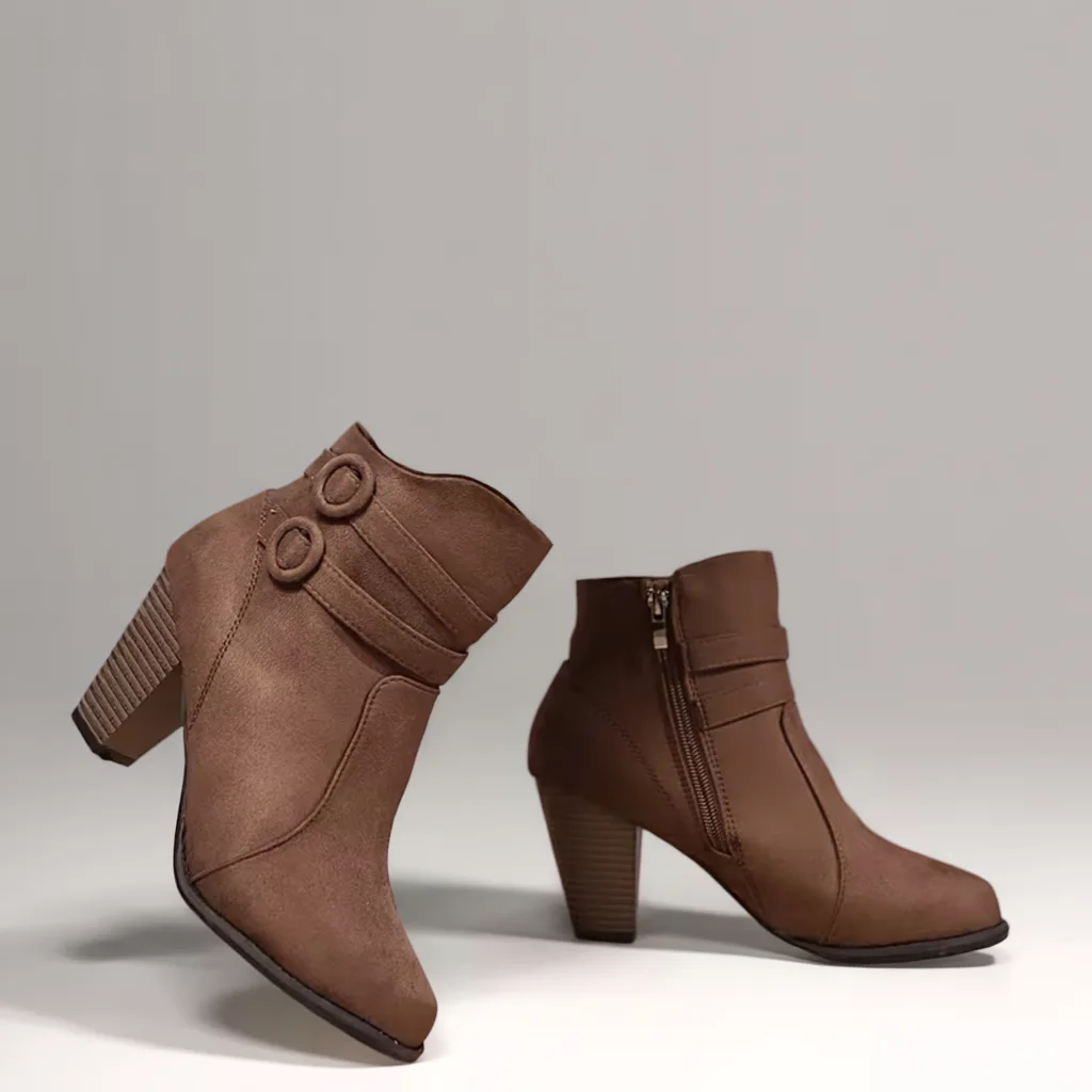 Women’s Winter Ankle Boots, Pointed Toe, Chunky Heel, Buckle & Zip